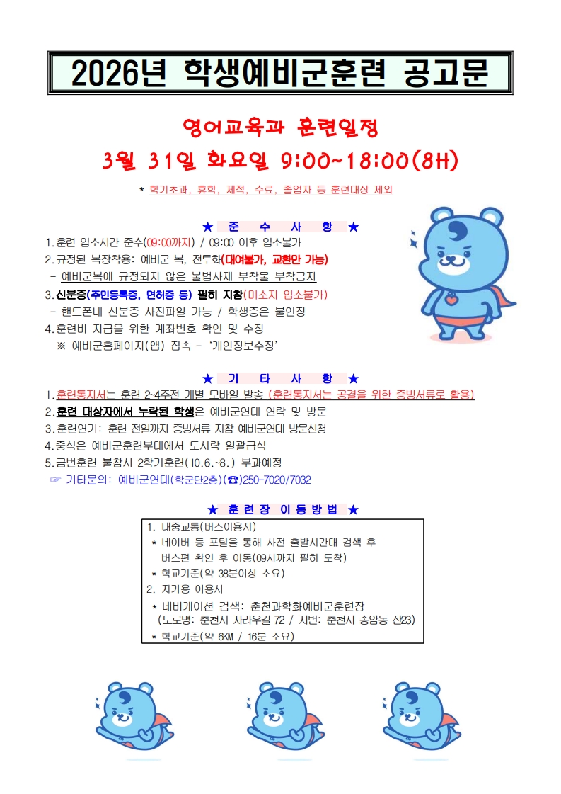 2026학년도 예비군 훈련계획